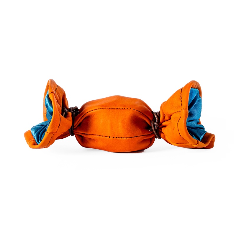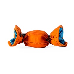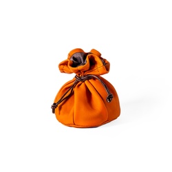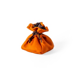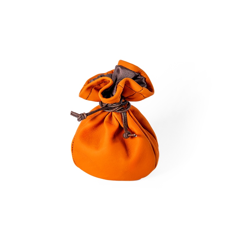 Měšec kulatého tvaru, boky tvořené šesti pruhy kůže, které se sbíhají ke kruhové základně naspod. Tvar takto, připomíná míč, z tělocvičny známý medicinbál. Navrchu stažený dvěma šňůrkami, které měšec uzavírají.