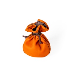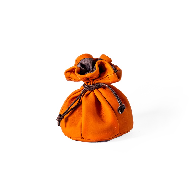 Měšec kulatého tvaru, boky tvořené šesti pruhy kůže, které se sbíhají ke kruhové základně naspod. Tvar takto, připomíná míč, z tělocvičny známý medicinbál. Navrchu stažený dvěma šňůrkami, které měšec uzavírají.